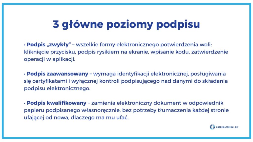Z tej perspektywy można mówić o trzech głównych poziomach podpisu: